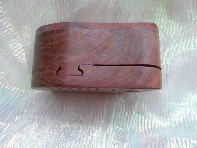 La boite s'ouvre en enlevant des pièces de bois à la manière d'un casse tête chinois.