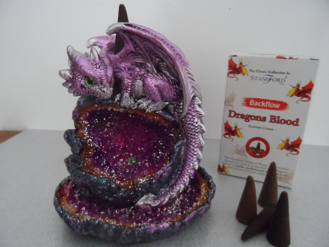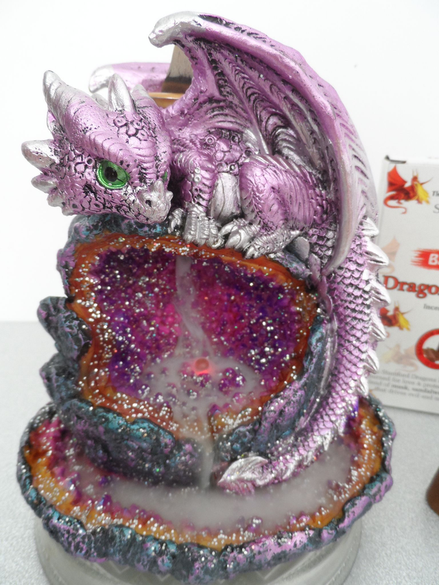 Brûleur d'encens Led à reflux Backflow Cave de Cristal Dragon Violet