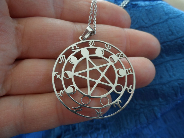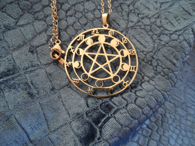 Un collier avec un pendentif représentant un pentacle, un zodiaque et les phases de la lune possède une forte signification spirituelle.