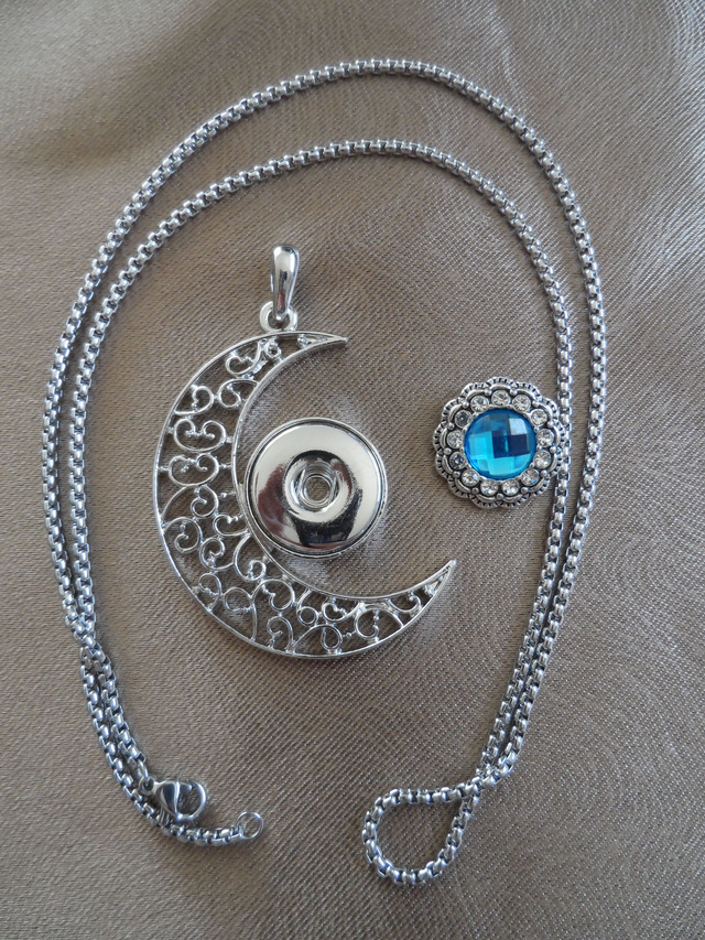 Collier Lune avec clip Fleur bleu