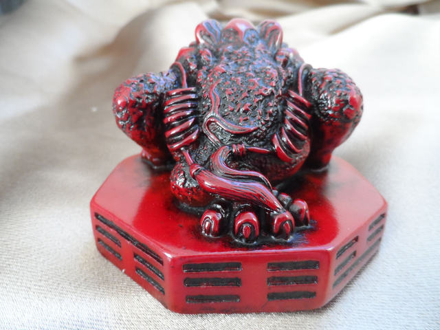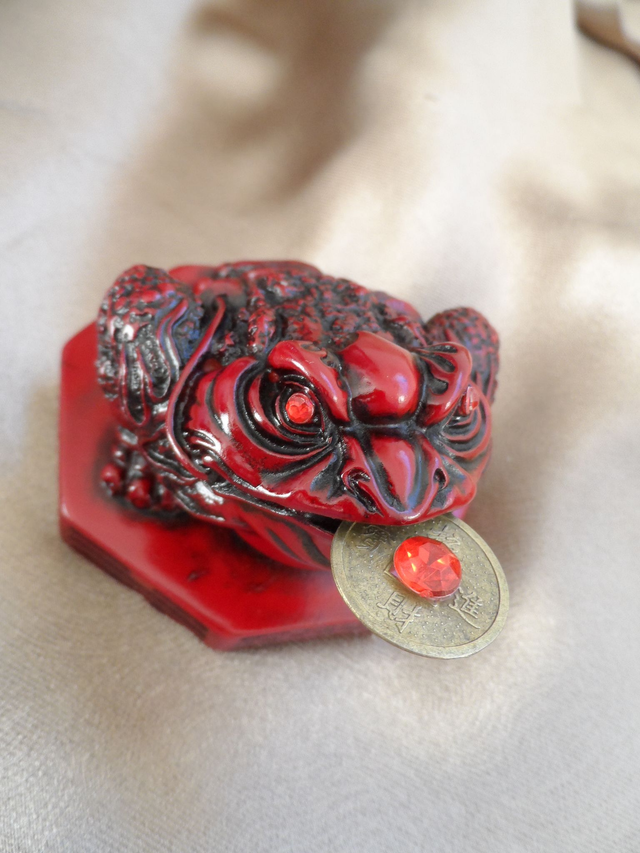 La grenouille rouge est traditionnellement associée à la richesse et à l'abondance. Elle est souvent représentée tenant des pièces de monnaie ou assise sur un tas de pièces, symbolisant l'attraction de la fortune.