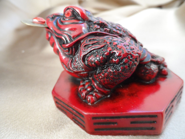 La grenouille rouge, souvent appelée la "grenouille aux pièces" ou "grenouille du bonheur", est un symbole puissant dans le Feng Shui.