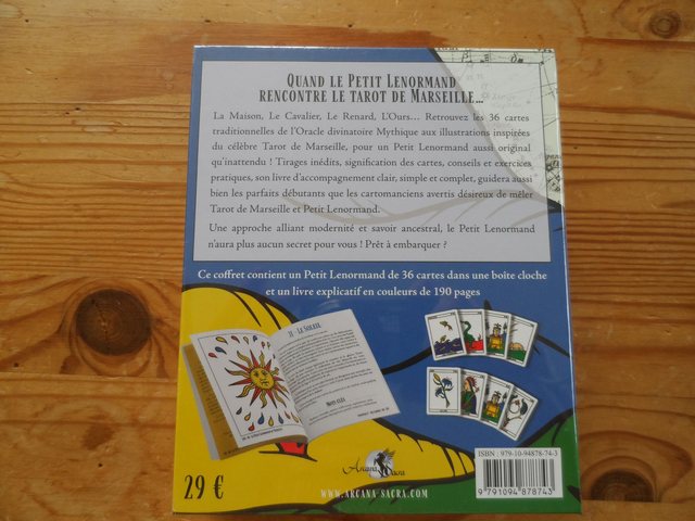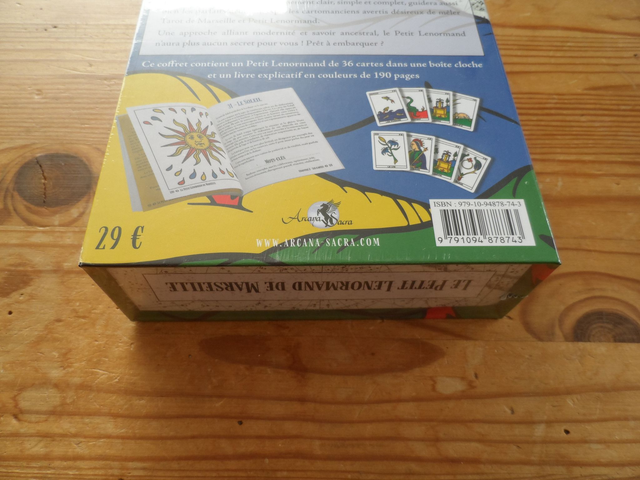 Ce coffret contient un Petit Lenormand de 36 cartes dans une boîte cloche et un livre explicatif