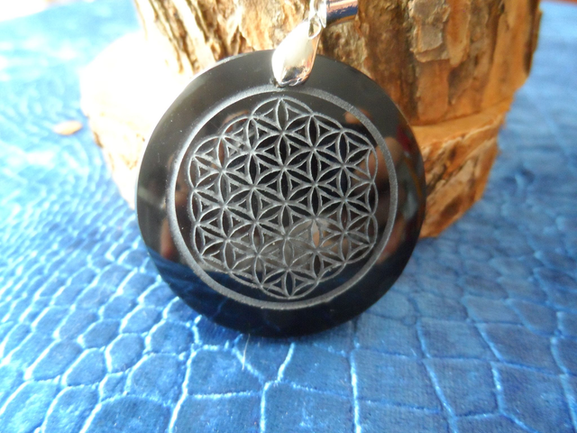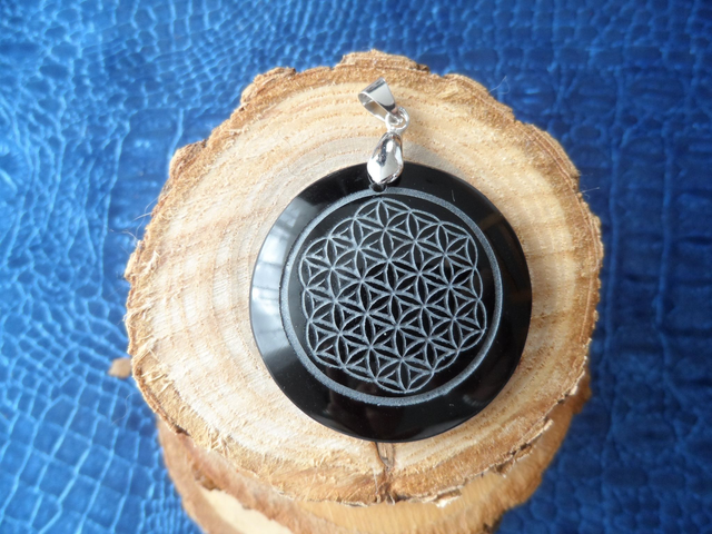 Pendentif Fleur de Vie Obsidienne noire