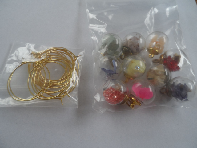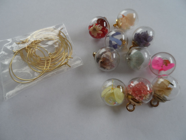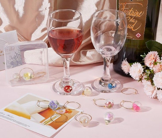 10 breloques en forme de globes de verre de fleurs séchées en 10 couleurs pour Identification des verres à Vin.